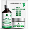El Dúo perfecto para prevenir + revertir manchas, aclara la piel de manera uniforme por la eficacia de sus activos que disminuyen la melanina; reduce manchas oscuras y aporta hidratación.
