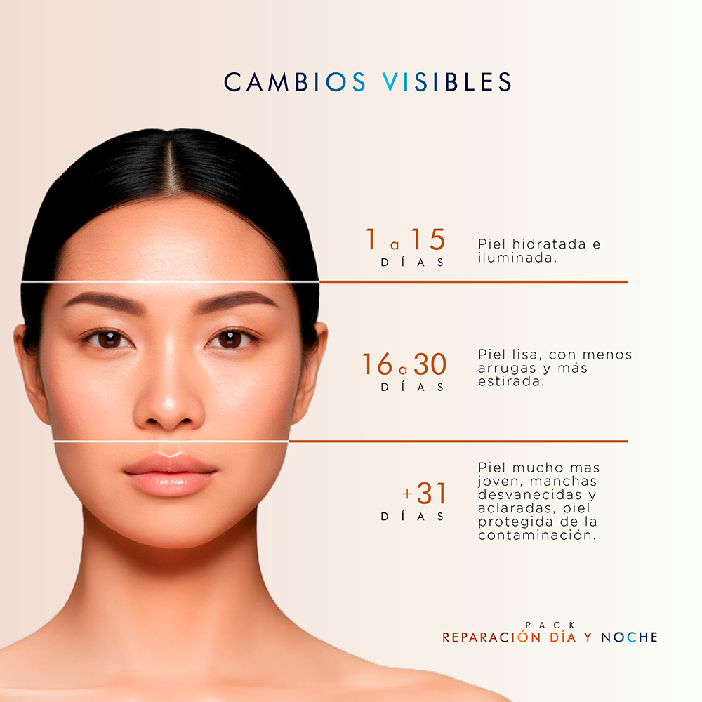 Día 21-30: Piel mucho más joven, manchas desvanecidas y aclaradas, piel protegida de la contaminación.