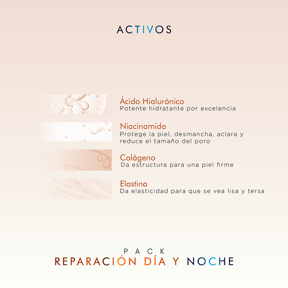 - Niacinamida: Protege la piel, desmancha, aclara y reduce el tamaño del poro.