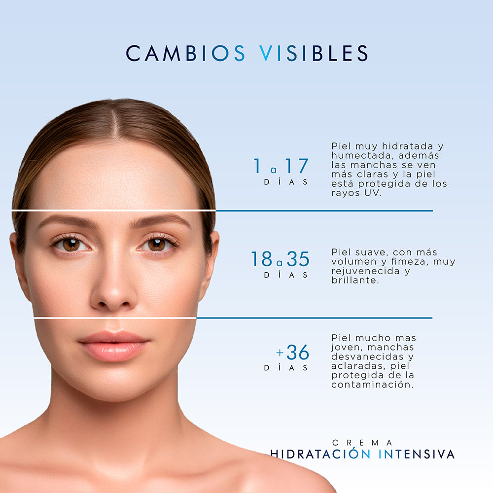 Día 1-17: Piel muy hidratada y humectada, además las manchas se ven más claras y la piel está protegida de los rayos UV.