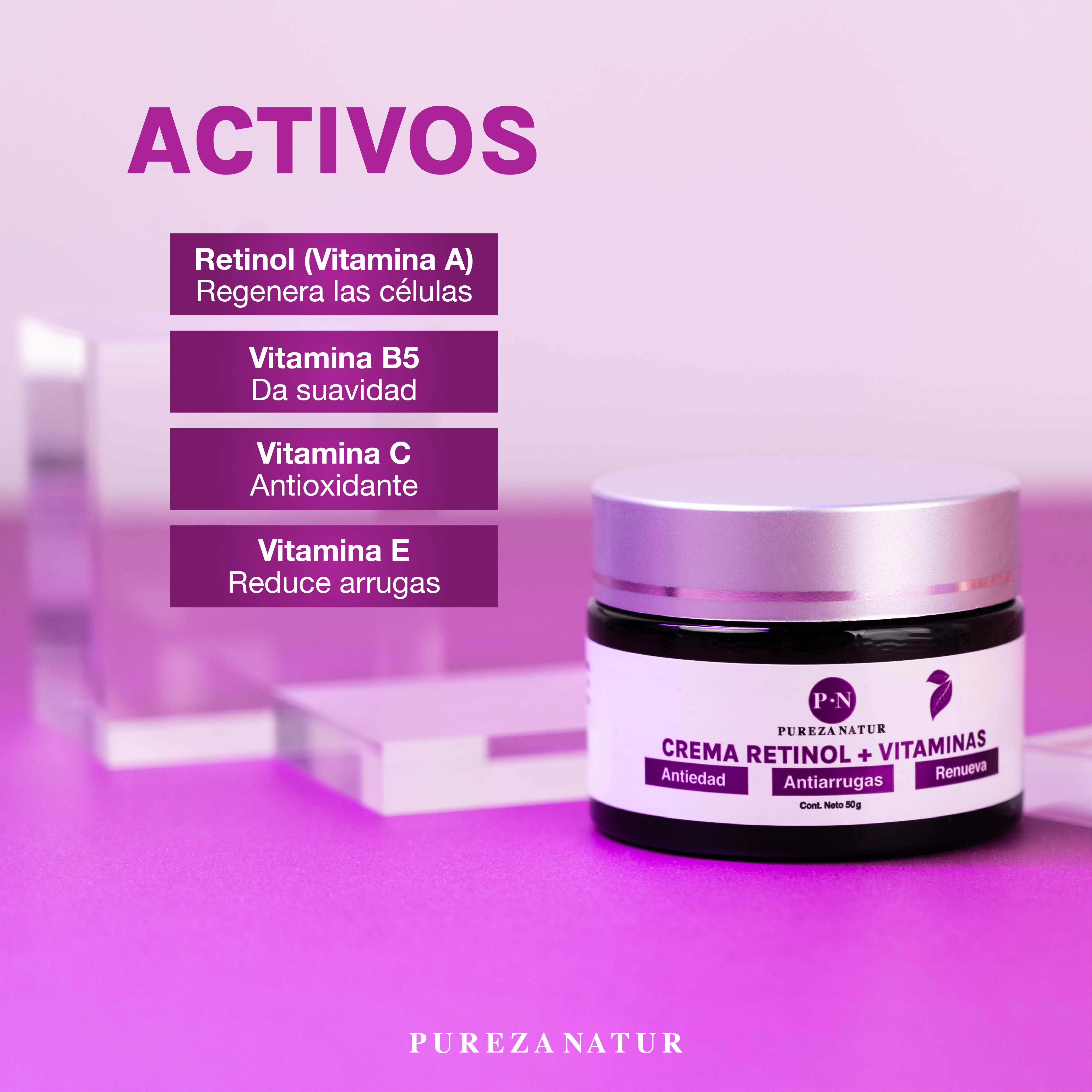 - Vitamina A: Regenera la piel, reduciendo líneas y arrugas.