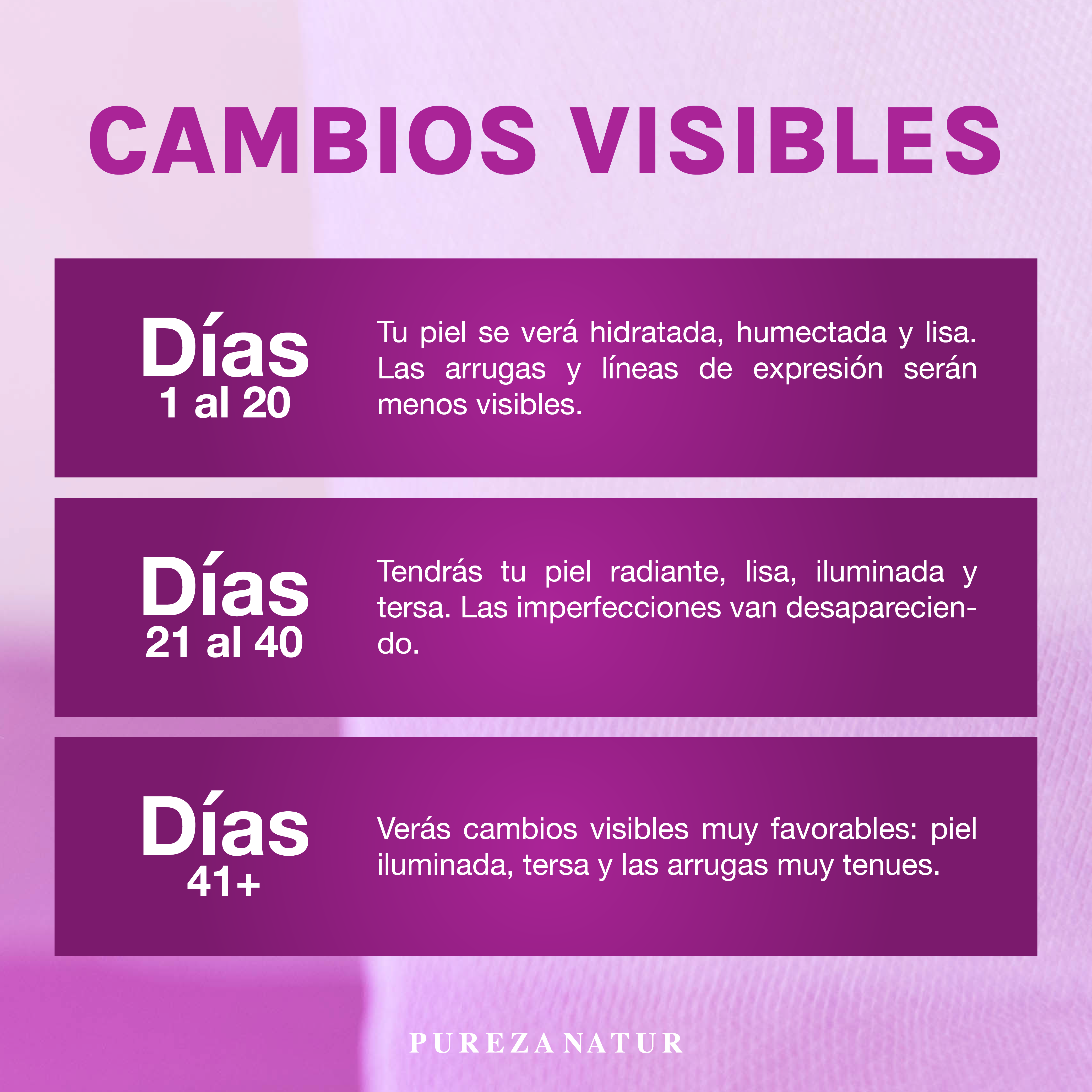 - Día 1-10: Mejora de textura y suavidad, arrugas menos visibles.