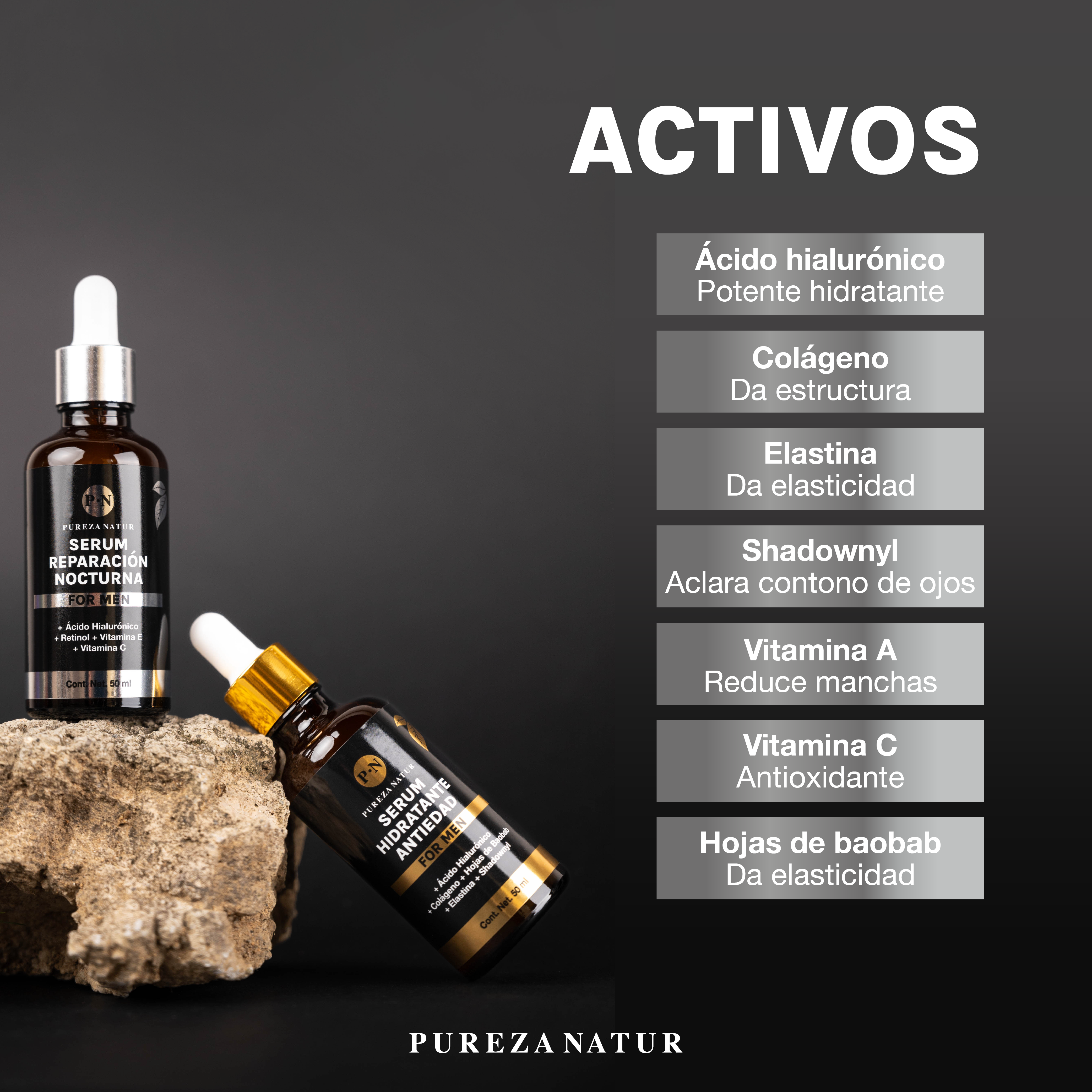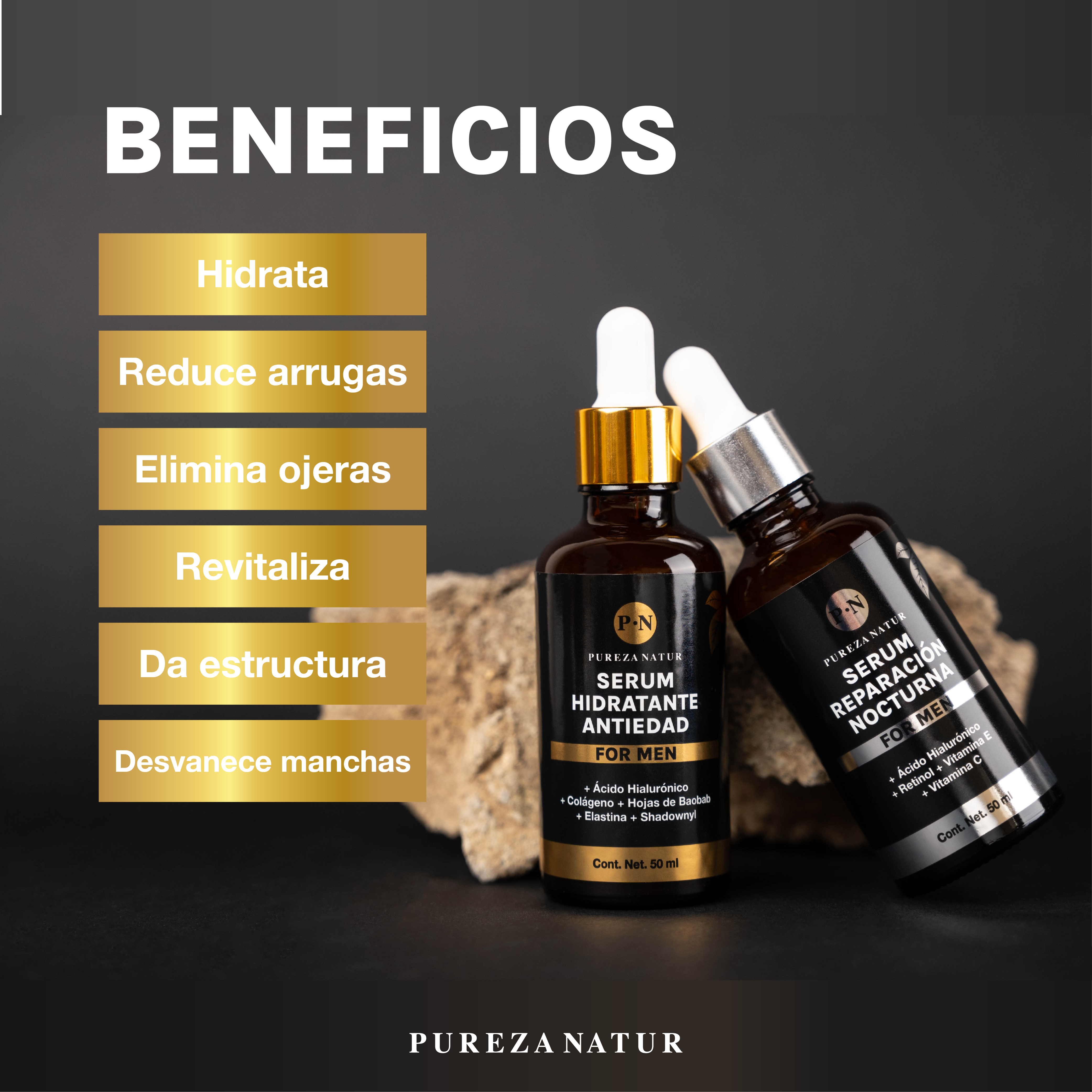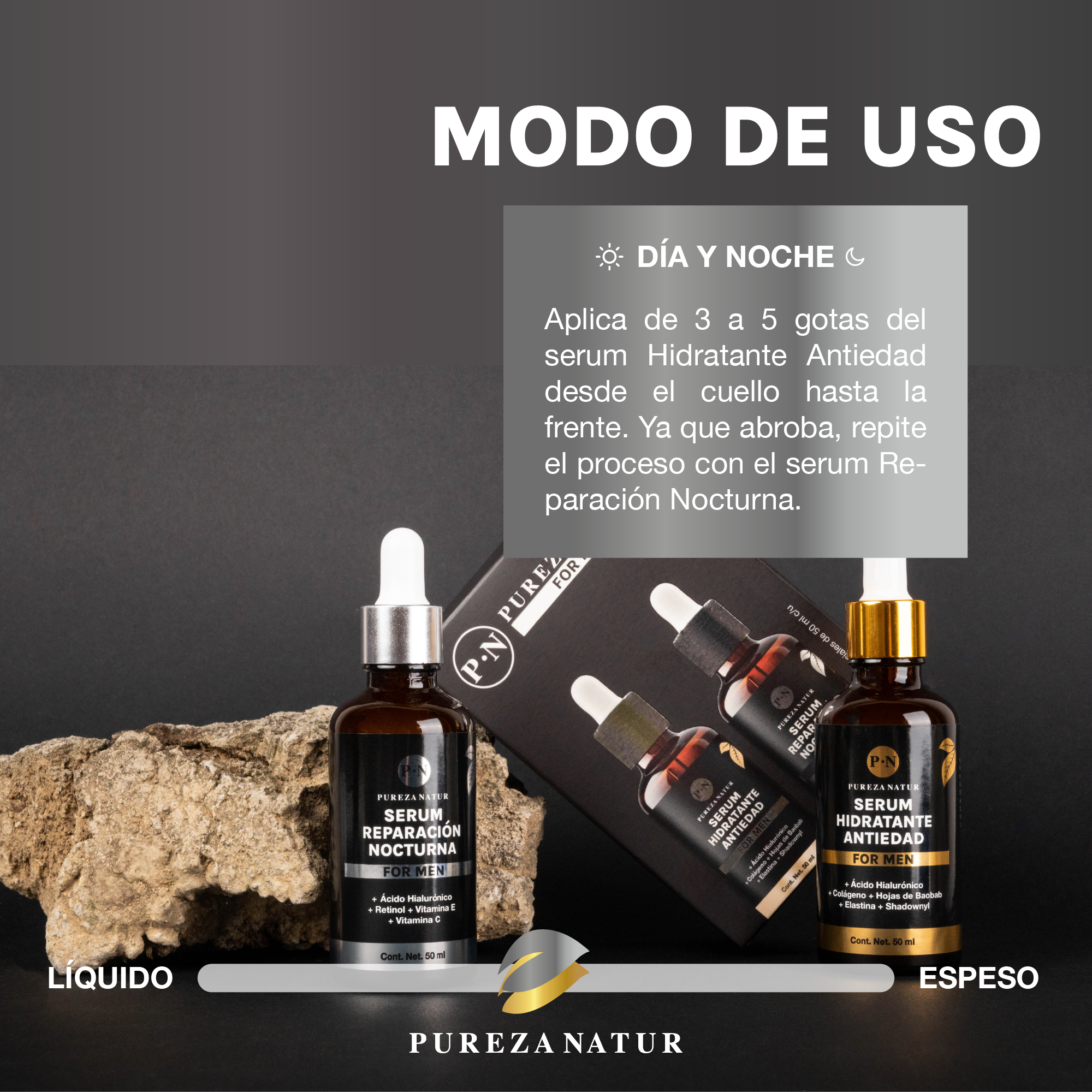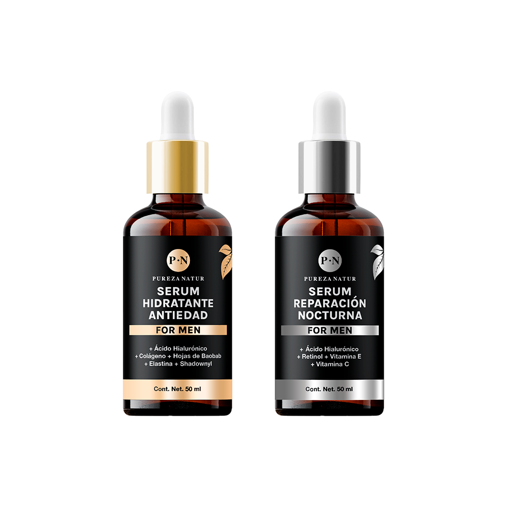 Una rutina de cuidado dual diseñada para las 24 horas del hombre moderno. El serum de DÍA protege y energiza la piel contra el estrés diario, mientras que el serum de NOCHE repara y regenera intensamente mientras descansas. Cómo resultado: una piel visiblemente revitalizada y resistente al paso del tiempo.